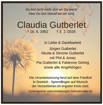 durch die Anzeige in der Offenbach Post haben wir von Claudias Tod erfahren.